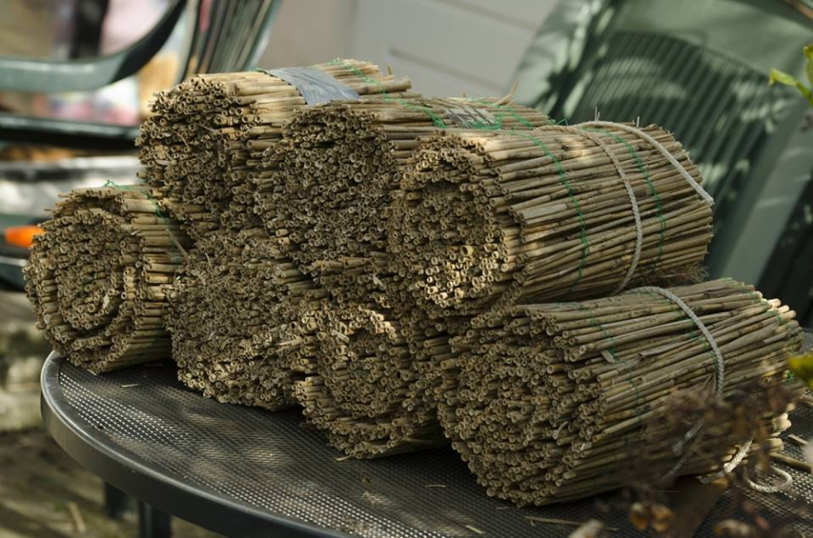 Als je de stengels van uitgebloeide bloemen laat staan, of op een beschutte plek bewaart, kunnen daar ook bijen in nestelen of overwinteren. Ze hoeven daarvoor niet in een bijenhotel te zitten. Sommige bijen knagen een nestgang in dode stengels van bramen of vlinderstruiken.